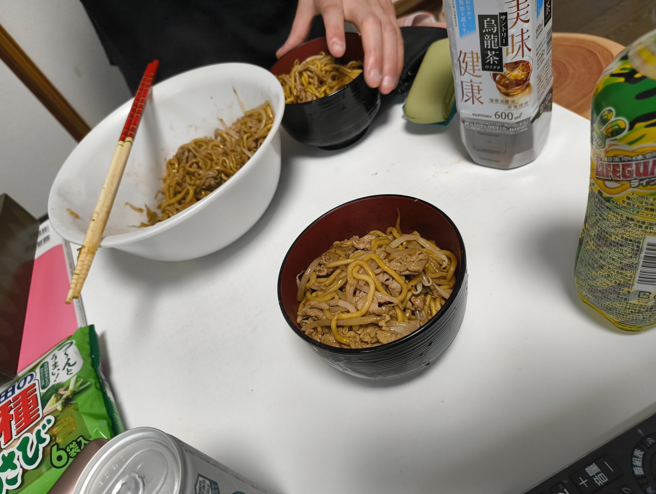 ちなみに焼きそばは肉屋のタクミが作ってくれたよ。そんで、洗い物までやってくれたので驚いた。