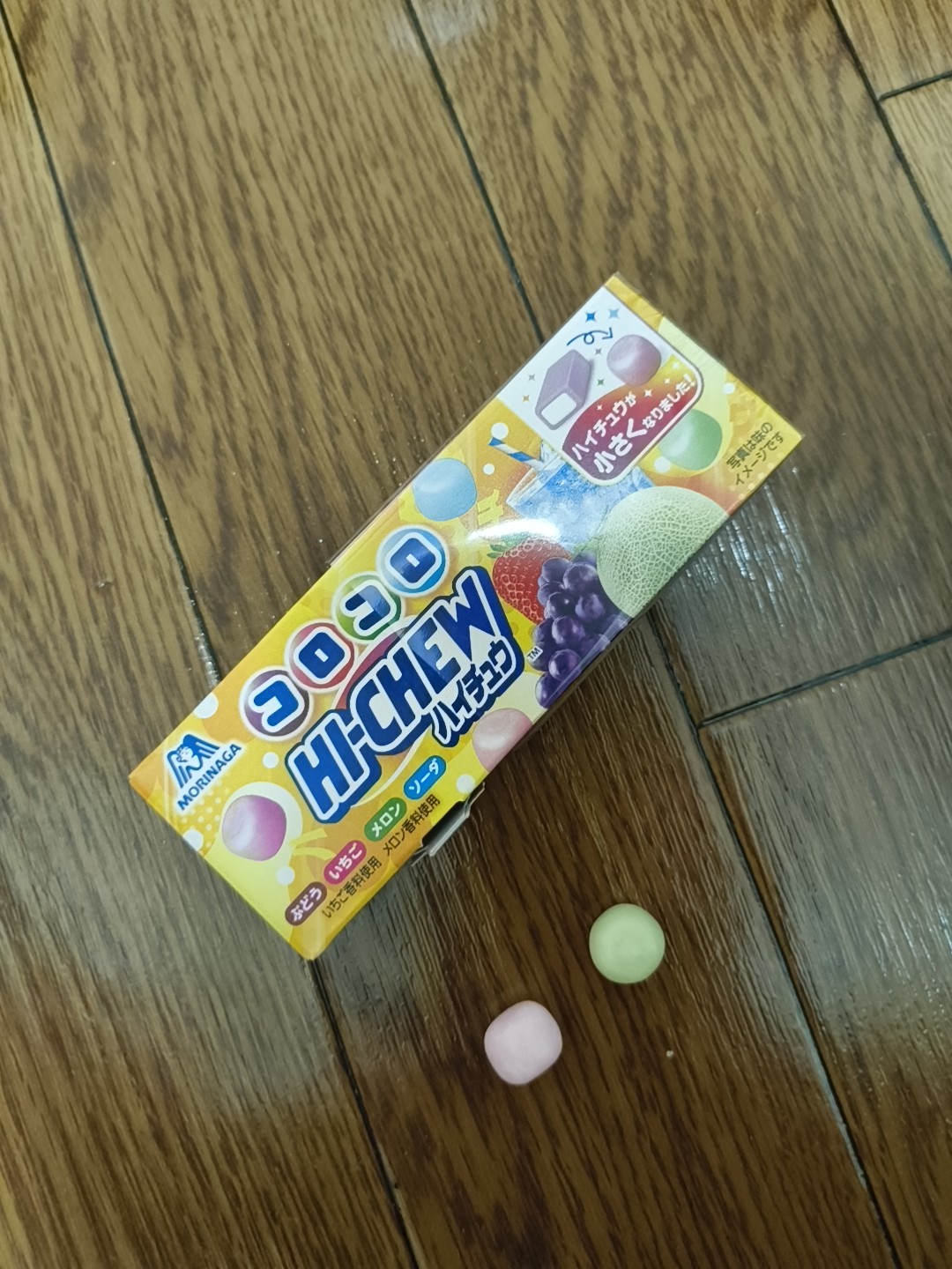↑家でおやつに食ったハイチュウ。小さいボールみたいな形で表面はコーティングされているよ。四角い普通のハイチュウよりも俺はこっちの方が好きだな。