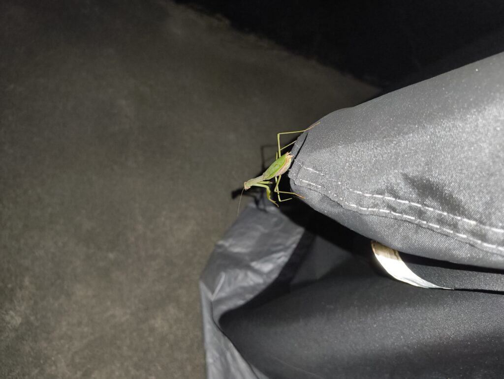 ↑11月も中旬だというのにカマキリがいた。コイツもお腹が膨らんでいるな。ぷくぷく。