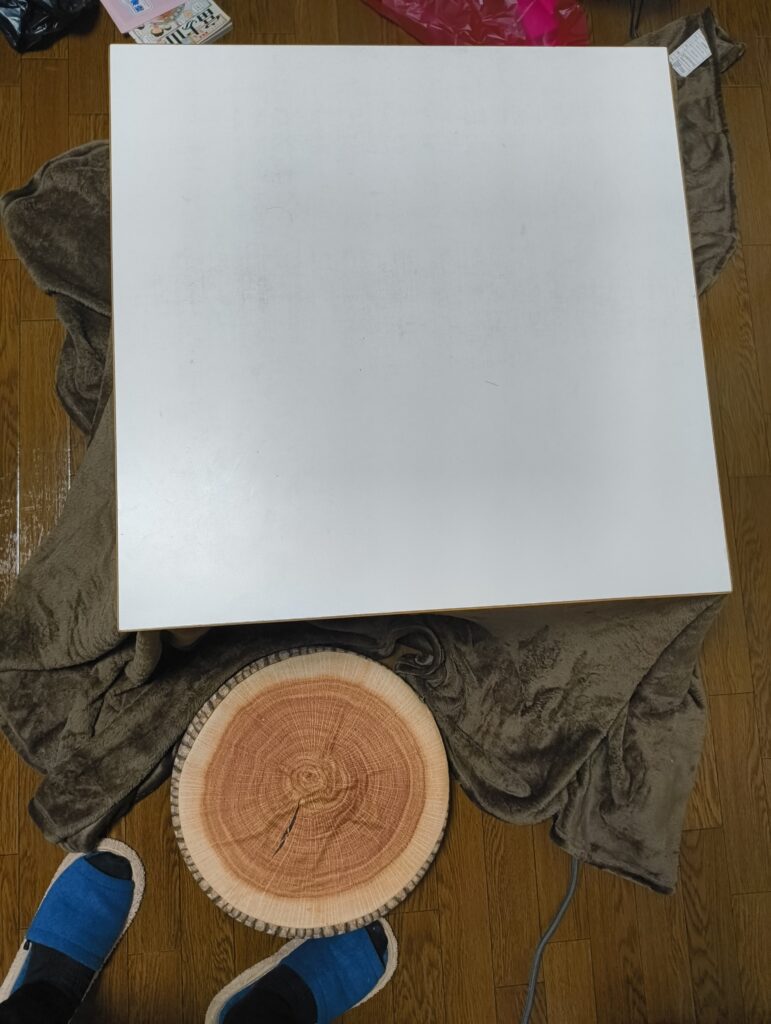 ↑買ってきました。こたつの布。なんていうのコレ?