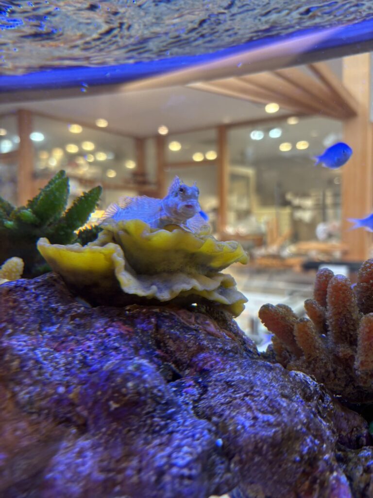 きらびやかな魚に混じって1匹だけハゼみたいなヤツがいたので、コーヒーを飲みながらしばらく観察していた。