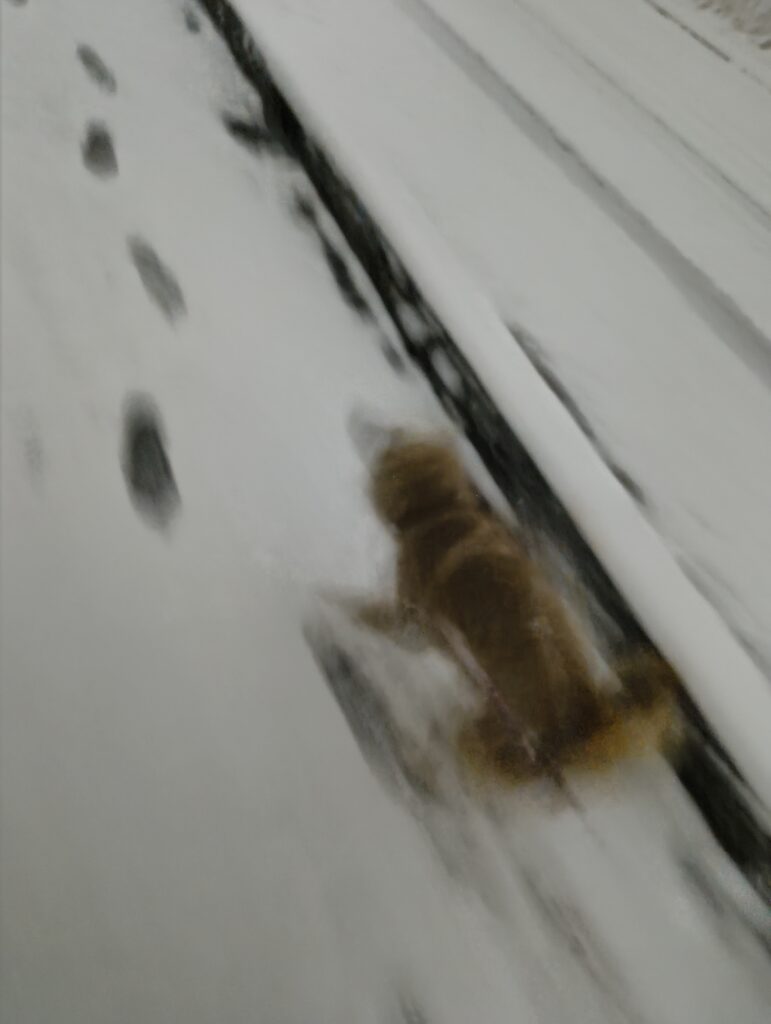 翌朝の9時頃にモナ犬の散歩に出かけると、アスファルトの雪は少し消えかかっていた。