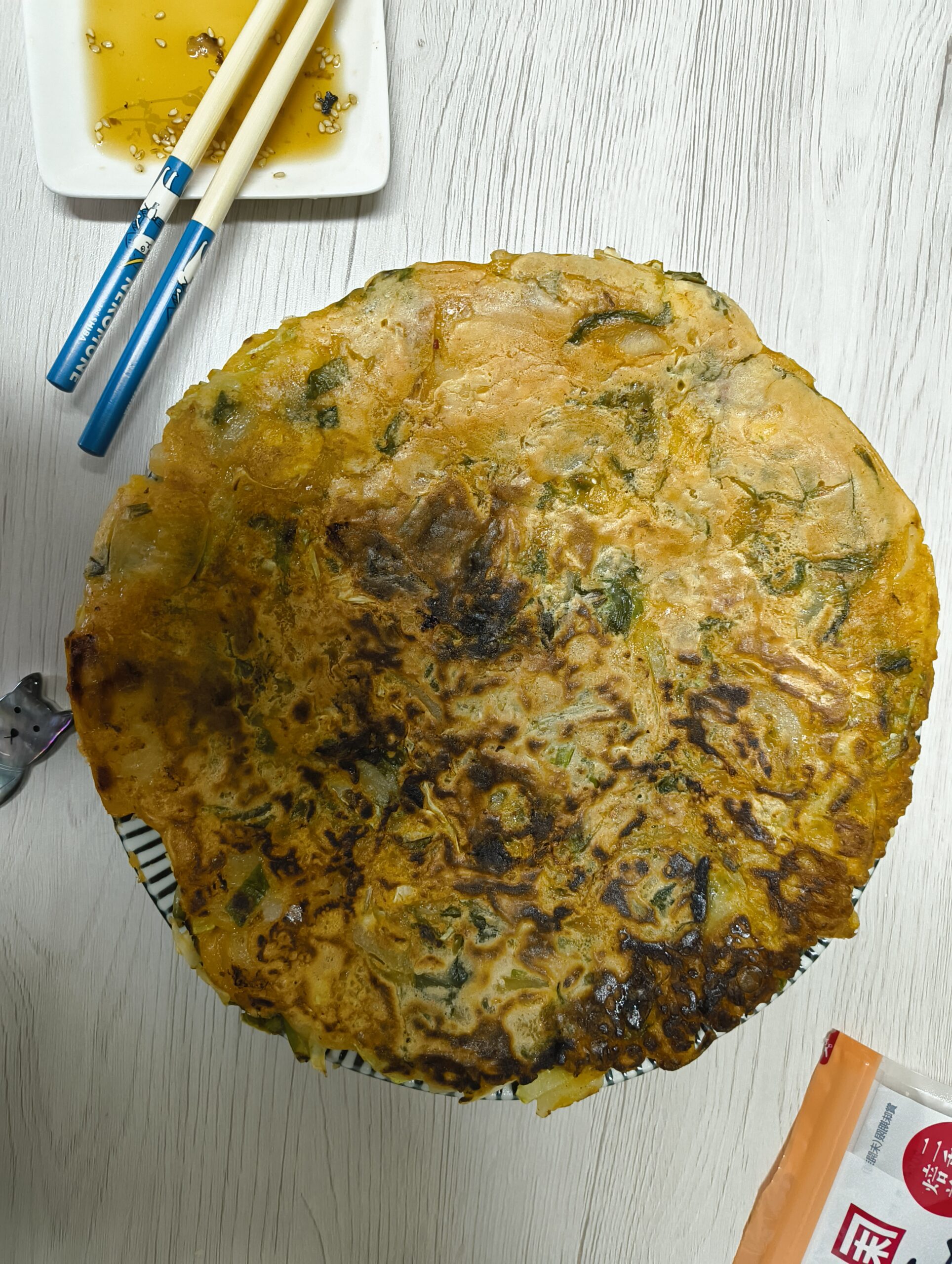 ↑昼飯にチヂミを焼いて食った。作るたびに上達しているような気がして嬉しいね。