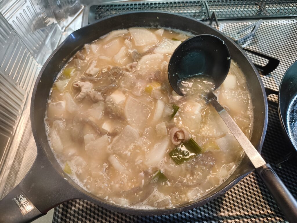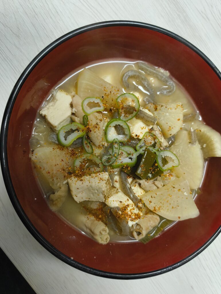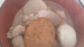↑夕飯で作ったもつ煮。最初は汁が豚汁みたいな味だったのだが、煮込むにつれてもつ煮らしい味になっていった。
