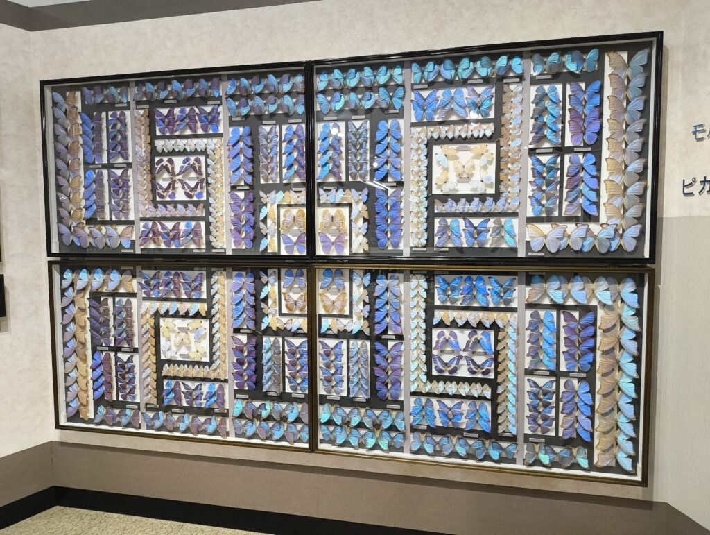 ↑2階にも様々な展示物があり、ここには蝶がズラリ。すごい迫力。