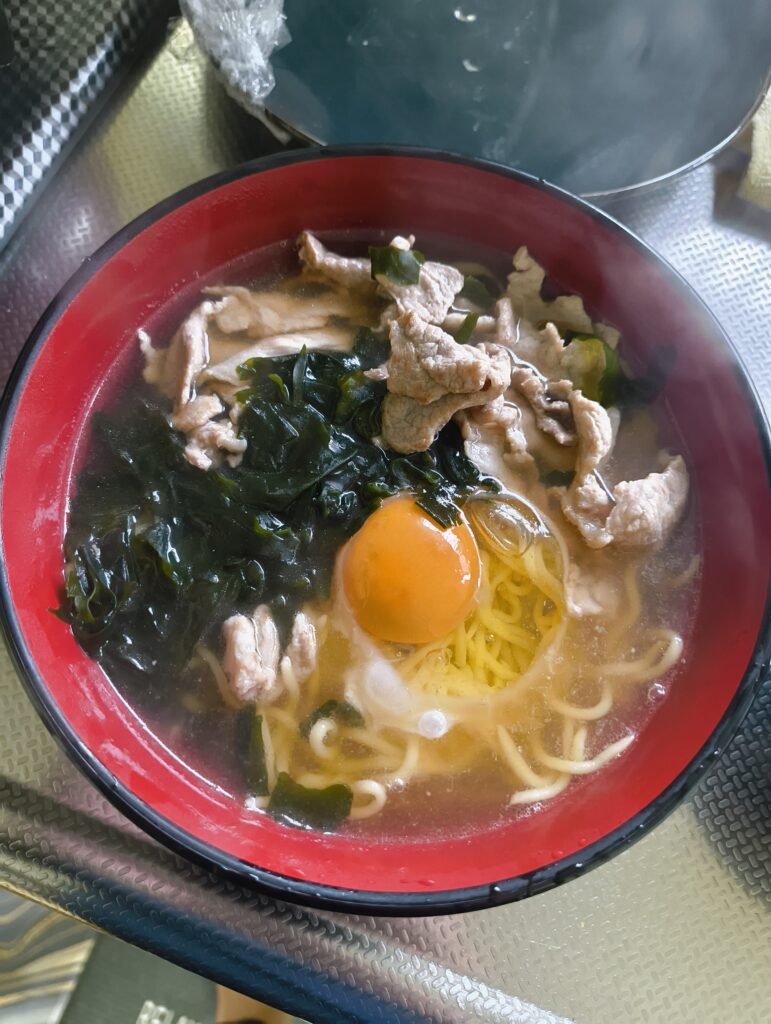 ↑こんにゃくで作られた麺を使用してラーメンを作ってみた。