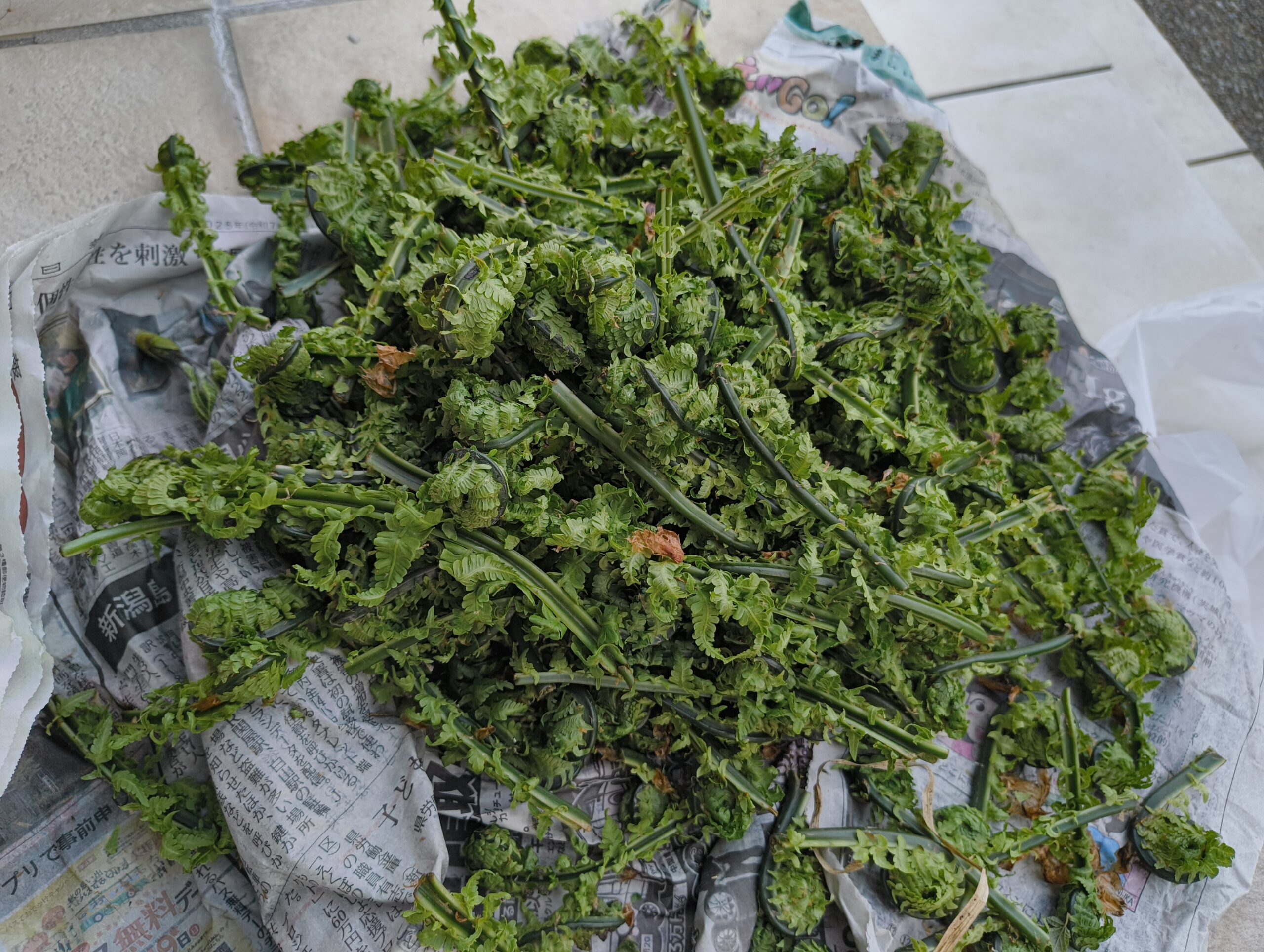 ↑モナ王が取ってきた山菜。なんて言ったかな。コゴメだったかな?コゴミだっけな?
